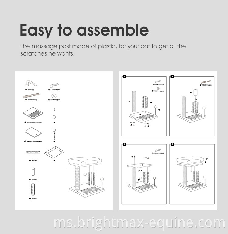 19 "Tinggi Kucing Pendek Tree Cat Perch Scratcher dengan Berus Plastik
