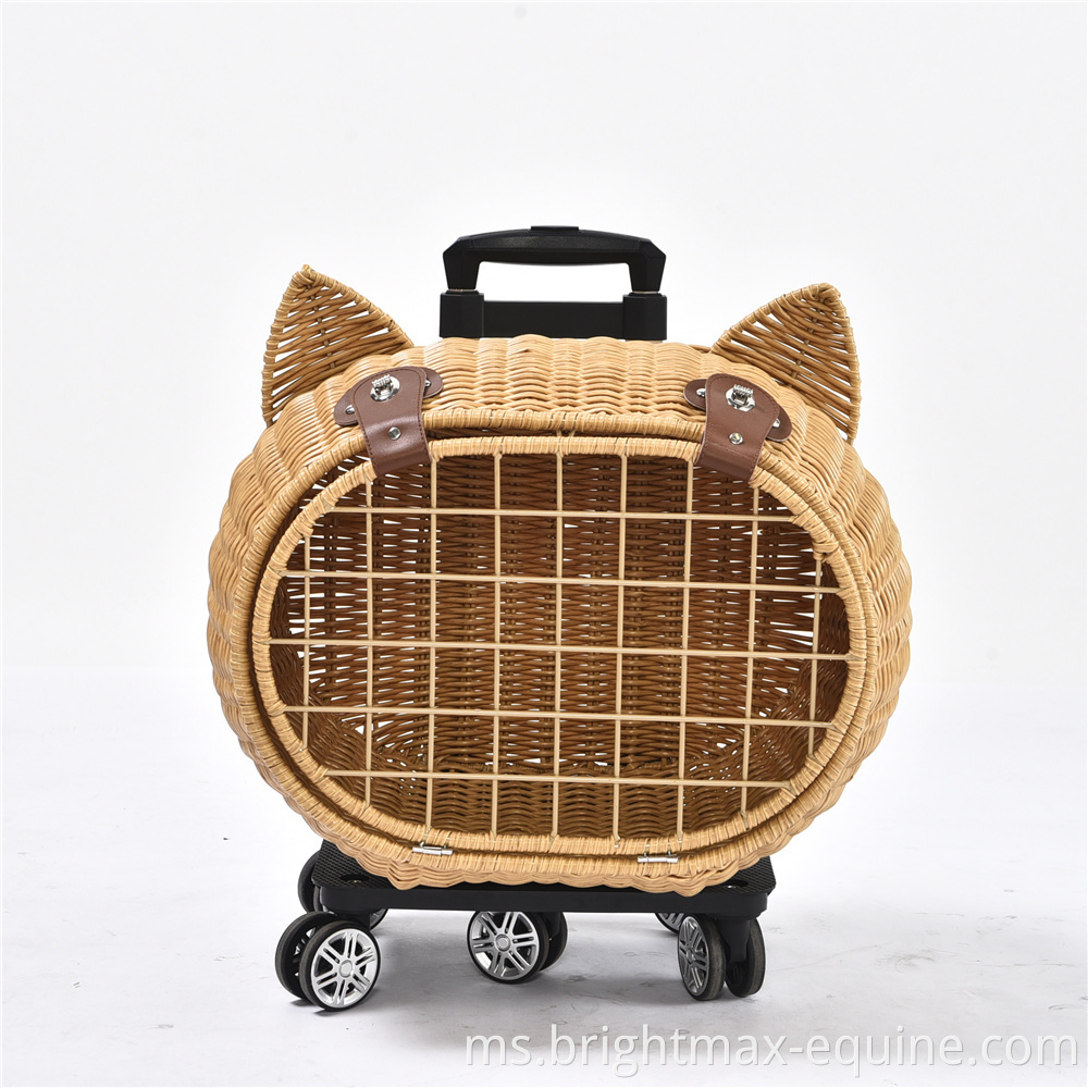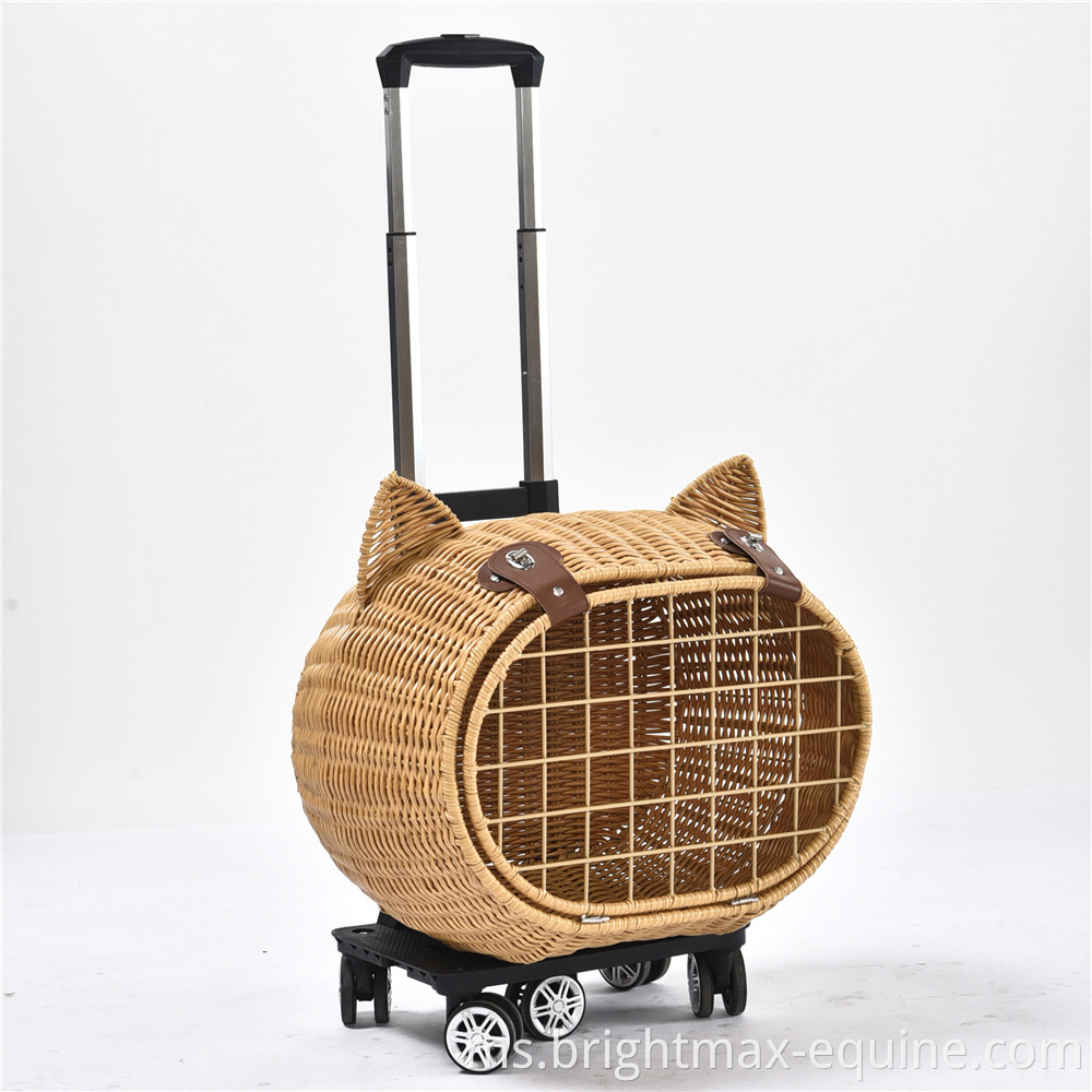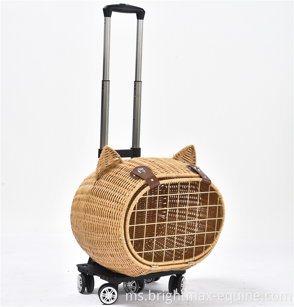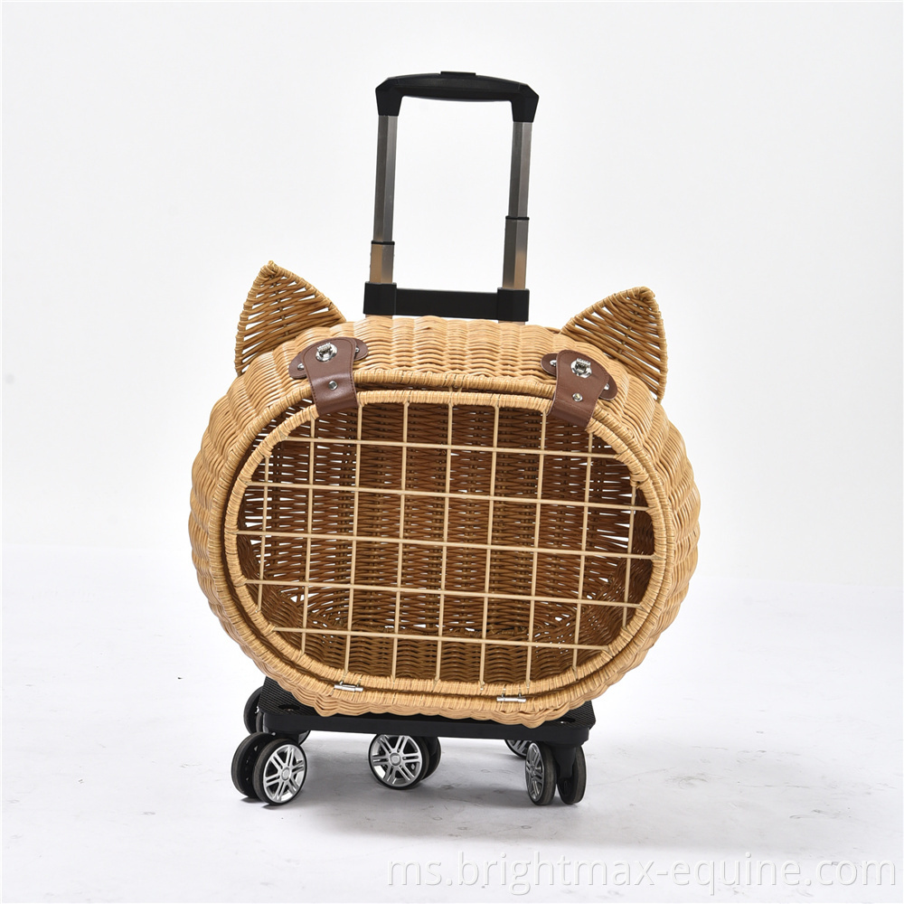 Beg Pembawa Perjalanan Pet Perjalanan Mewah Anjing Rotan Rotan On Wheels Stroller Trolley Cat Travel Carrier Copercase
