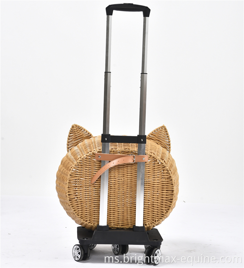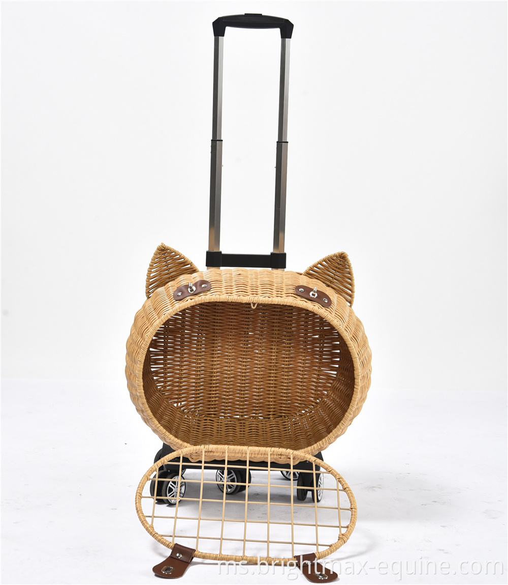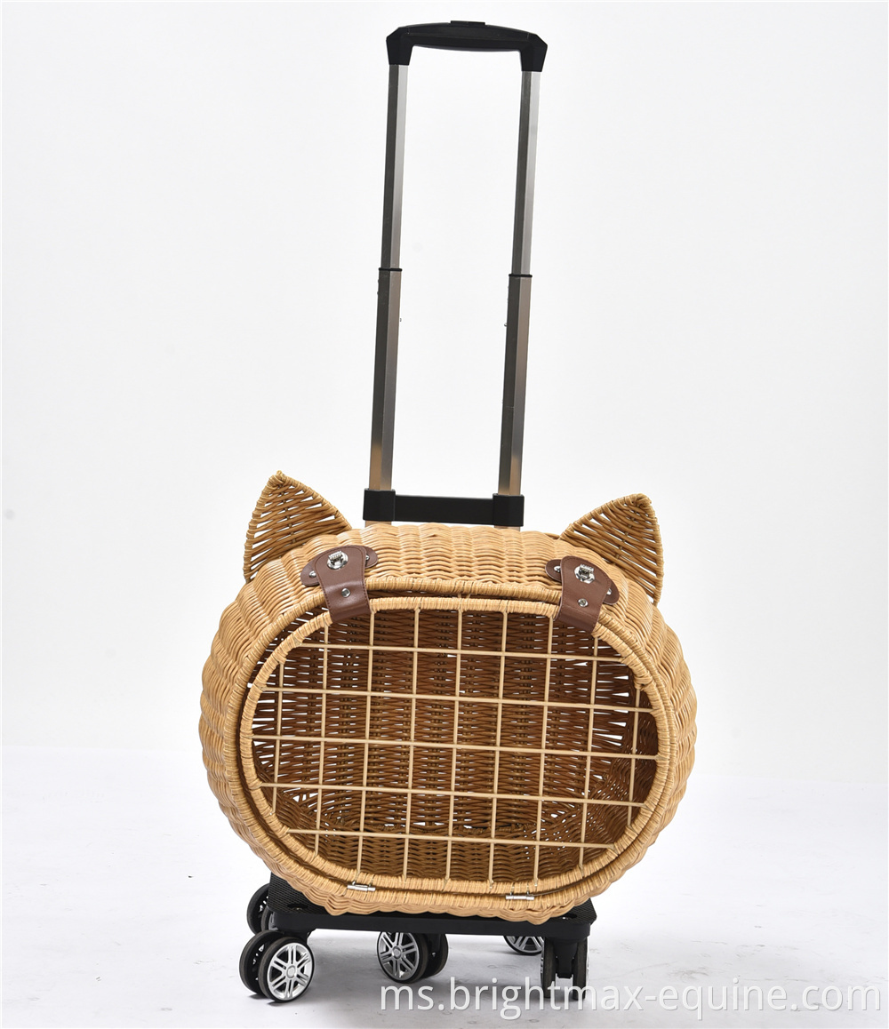 Beg Pembawa Perjalanan Pet Perjalanan Mewah Anjing Rotan Rotan On Wheels Stroller Trolley Cat Travel Carrier Copercase